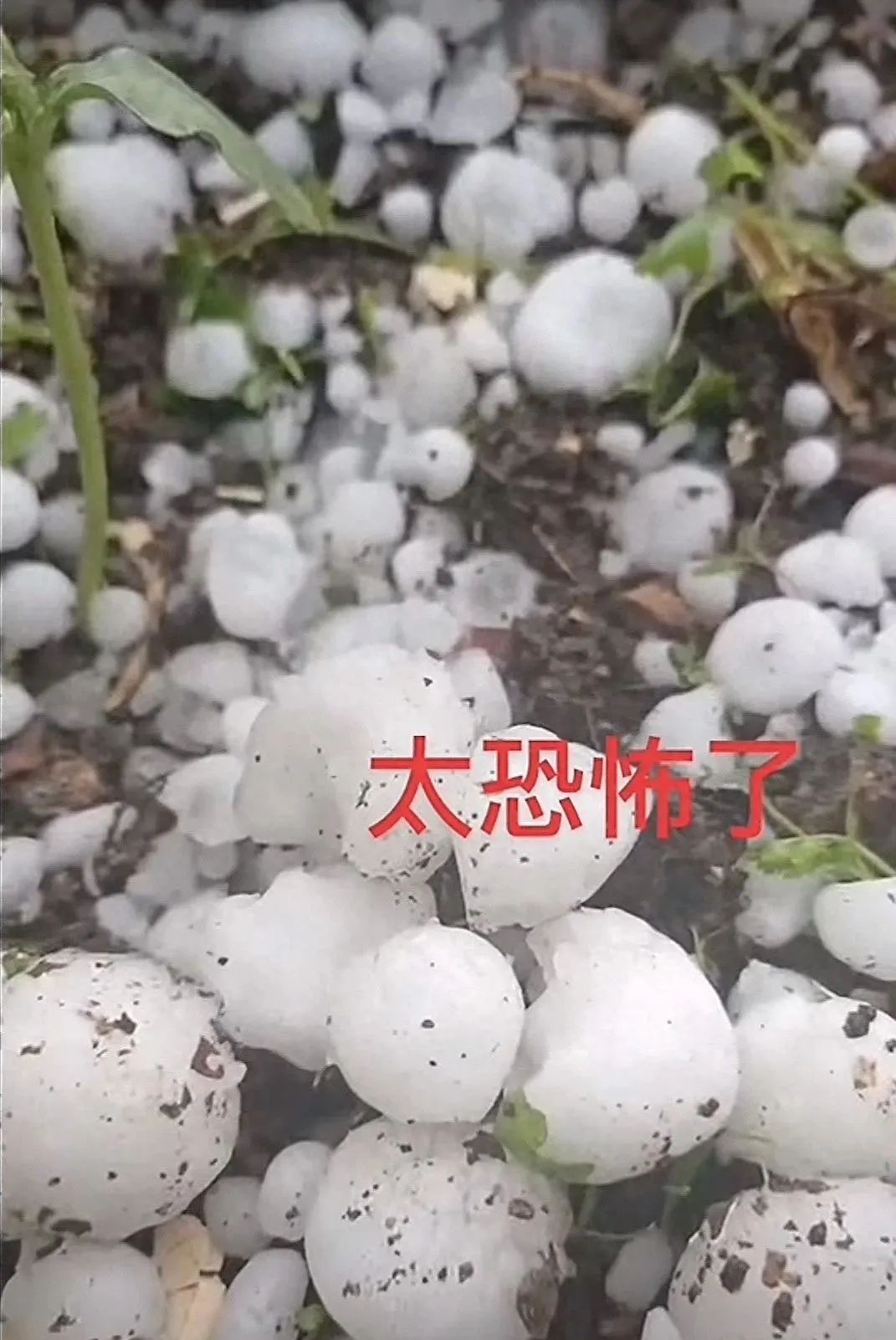 落到地里的冰雹。图/社交平台截图
